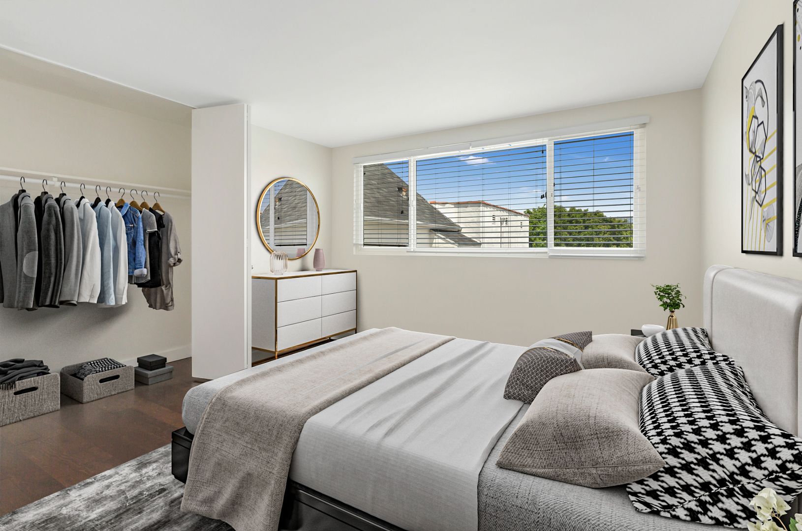 Welcome to 350 Reeves Apartments in Beverly Hills, where luxury and elegance meet comfort and convenience. These expansive 1 and 2-bedroom apartment homes offer a refined living experience in the heart of Beverly Hills. Step into a vast living room featuring a wall of windows that flood the space with natural light, offering picturesque views of the charming, tree-lined street. The adjacent dining room is perfect for entertaining and seamlessly connects to a gourmet kitchen, equipped with upgraded stainless steel appliances and abundant stone counter space—ideal for those who love to cook. The master bedroom is a true retreat, featuring an impressive walk-in closet accessible from two doors. This spacious closet is designed with multiple hanging rods to accommodate all your wardrobe needs. The master bath is a luxurious haven, adorned in stone and featuring a generous walk-in shower and a large soaking tub for ultimate relaxation. Throughout the apartment, you'll find beautiful wood floors and a linen closet for added storage. On-site laundry facilities are provided for residents' convenience, and parking is secure, with tandem spaces available for two vehicles under the building. Located just a short stroll from the vibrant shopping and dining scene on Beverly Drive, 350 Reeves Apartments offers the perfect blend of luxury living and prime location in Beverly Hills. **We reserve the right to change pricing at any time and for any reason. Pictures shown might not depict actual units available.**